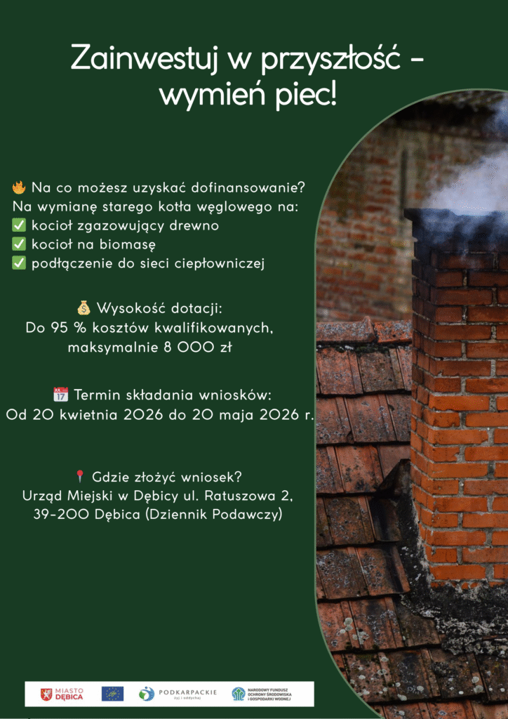 Mieszkańcy Dębicy mogą skorzystać z programu wsparcia finansowego na wymianę starych, nieekologicznych źródeł ciepła. Inicjatywa realizowana z budżetu miasta ma na celu poprawę jakości powietrza oraz ograniczenie emisji szkodliwych substancji powstających podczas spalania paliw stałych.
