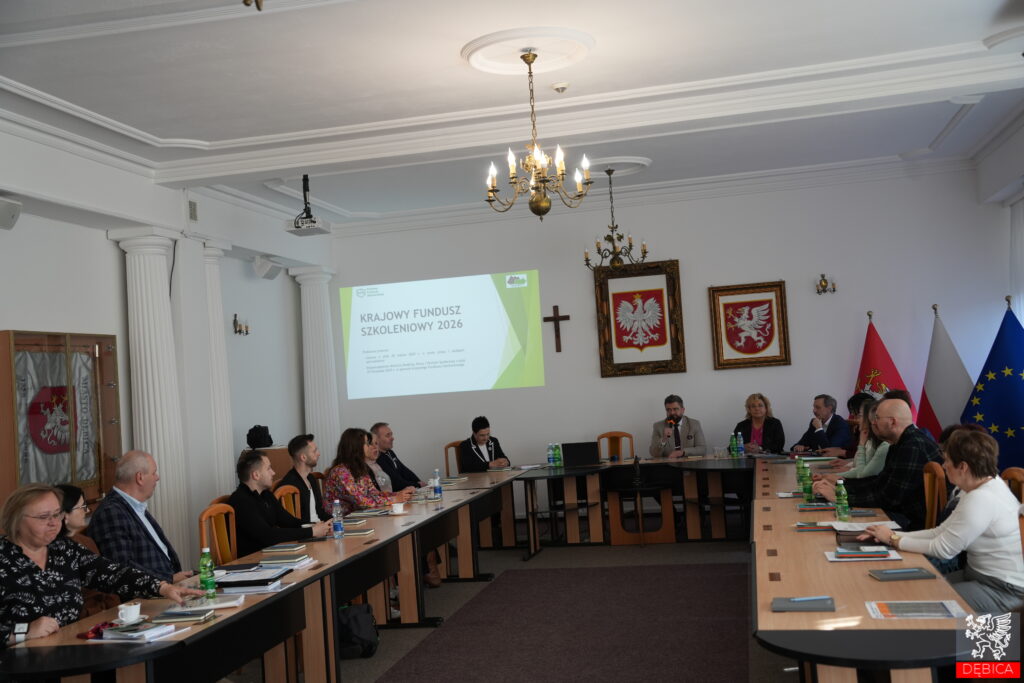 W dniu 5 marca 2026 roku w sali sesyjnej Urzędu Miejskiego w Dębicy odbyło się spotkanie informacyjne dla przedsiębiorców, poświęcone nowościom w Krajowym Funduszu Szkoleniowym 2026, programowi „Zdobądź Dyplom PIP” oraz zmianom w prawie pracy 2026.
