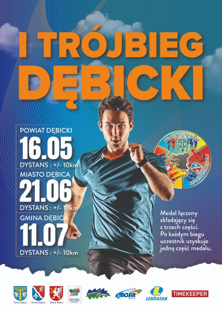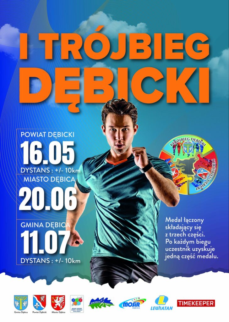 Wyjątkowym elementem całego cyklu jest pamiątkowy medal składający się z trzech części. Każdy z biegów – powiatowy (16 maja 2026 r.), miejski (20 czerwca 2026 r.) oraz gminny (11 lipca 2026 r.) – to jedna część medalu. Ukończenie wszystkich etapów pozwoli skompletować całość i stworzyć unikatową pamiątkę I Trójbiegu dębickiego.
