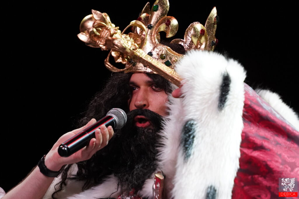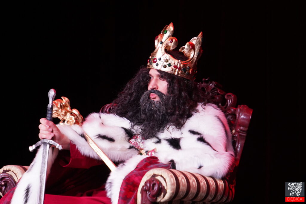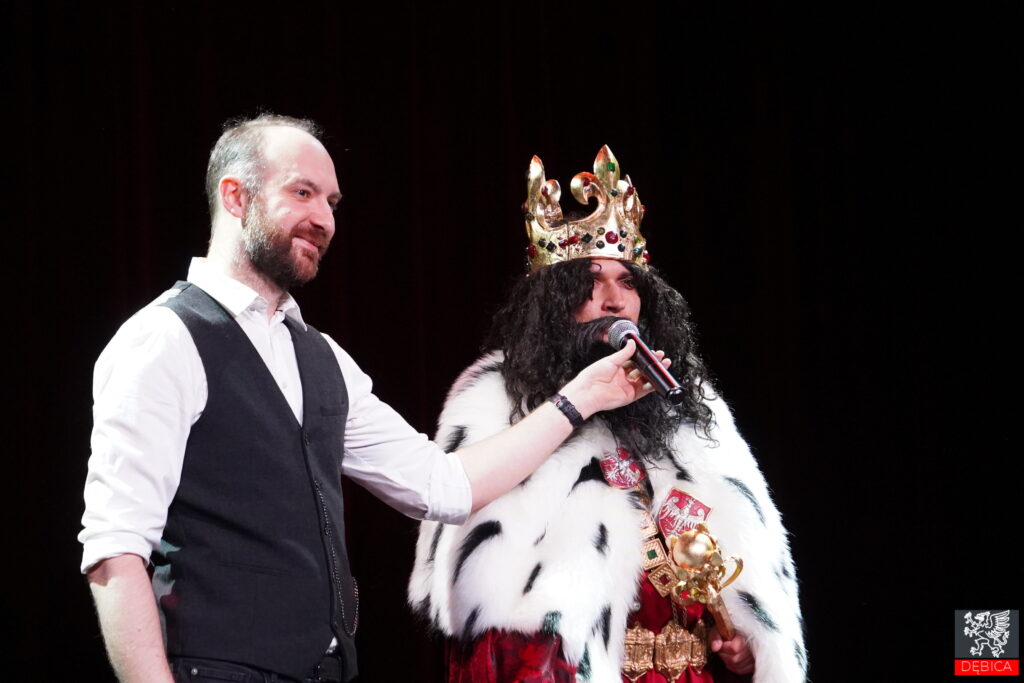 Wydarzenie poprowadzili dyrektor MOK w Dębicy Dawid Pikor oraz instruktorka teatralna Dominika Midoń-Madura, czuwając nad jego przebiegiem i wprowadzając uczestników w kolejne części programu. Do samego końca pod teatralną aurą tajemnicy pozostawało, kto wcielił się w postać królewskiego gościa. My uchylamy rąbka tej scenicznej zagadki. Rolę Króla Kazimierza Wielkiego z powodzeniem odegrał zastępca burmistrza Dębicy Maciej Małozięć, któremu gratulujemy udanego debiutu teatralnego.